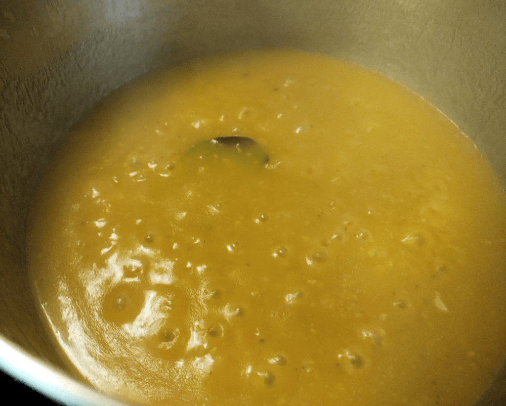 After straining the tomatoes, I fried up some finely chopped onions and garlic in some olive oil until soft, then added the strained tomatoes back to the pot. For seasoning, I added salt and pepper, a bit of sugar, and a bay leaf, then cooked it down until slightly thicker.
