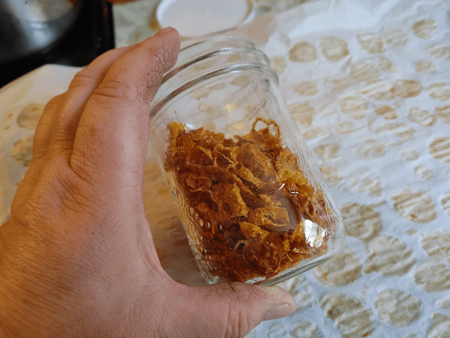 Once I’d combined the Yellow Pear tomatoes, I set up a cooling rack and started dehydrating some Cup of Moldova tomatoes. Once the Yellow Pear tomatoes were done, I filled the baking sheet again with more of them. That finished off what I’d picked earlier, but this morning I gathered more ripe tomatoes!