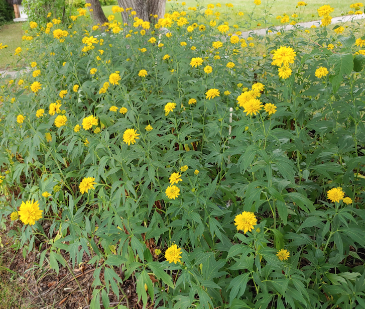 These are all about 3 feet tall. Can you make out the two markers hidden in them? That’s where the haskap berries are planted. The flowers are actually cleared away from around them, and they’re still hard to see! :-D